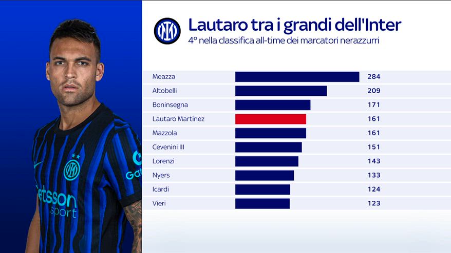Lautaro Martinez con il gol realizzato ieri contro la Lazio raggiunge Sandro Mazzola con 161 gol. L'attaaccante è il 4^ in classifica nella classifica all-time dei nerazzurri. Il nostro inviato Matteo Barzaghi ci aggoirna sulle ultime. Guarda il VIDEO.