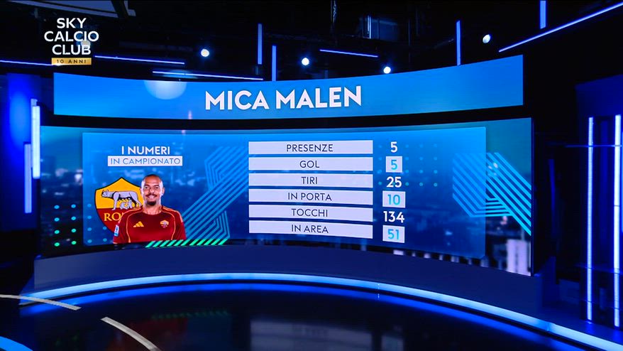 Nel VIDEO l'analisi a Sky Calcio Club dei numeri di Malen con la Roma. Ha segnato 5 gol in 5 presenze, realizzando 25 tiri in porta, 134 tocchi di cui 51 in area di rigore: tutti i dati.