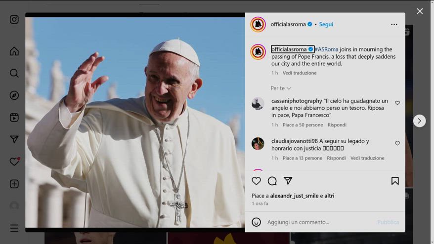 Morte Papa Francesco, il cordoglio della Roma