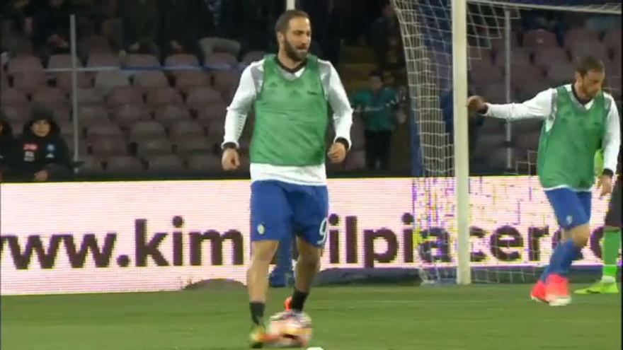 L'accoglienza del San Paolo per il Pipita, nell'immediato prepartita di Napoli-Juventus.