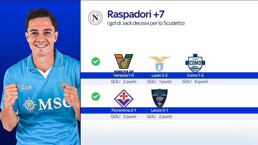 Napoli, i gol decisivi di Raspadori: i numeri