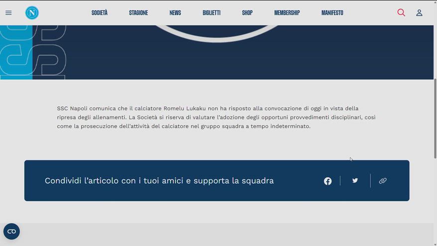 Lukaku, la posizione del Napoli non cambia dopo il messaggio