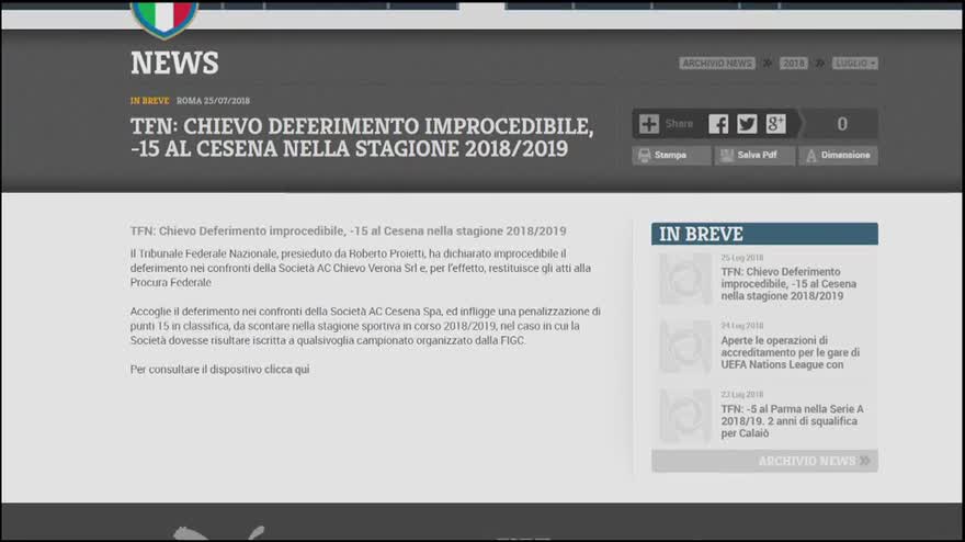 Plusvalenze Chievo, Tribunale Federale: "Caso improcedibile"