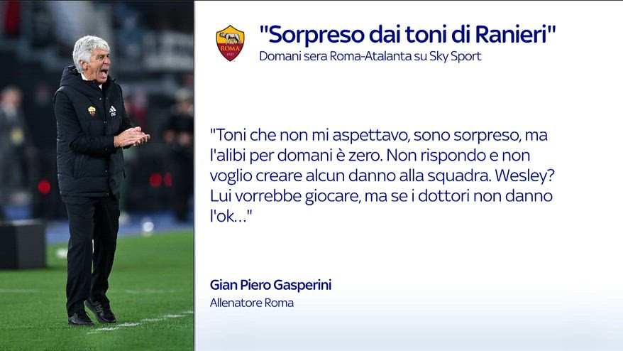 Roma, Gasperini: "Sorpreso dai toni di Ranieri"