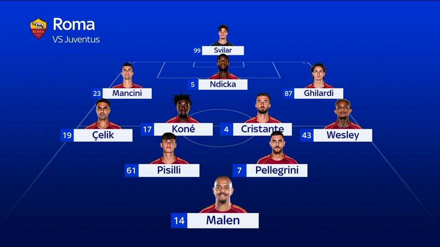 Roma-Juve, le probabili formazioni: Rensch dal 1'
