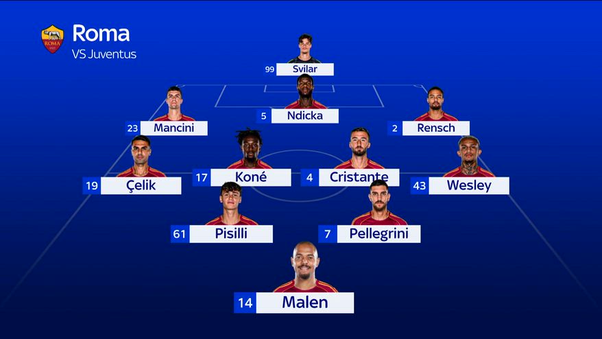 Roma-Juve, le probabili formazioni: Rensch dal 1'