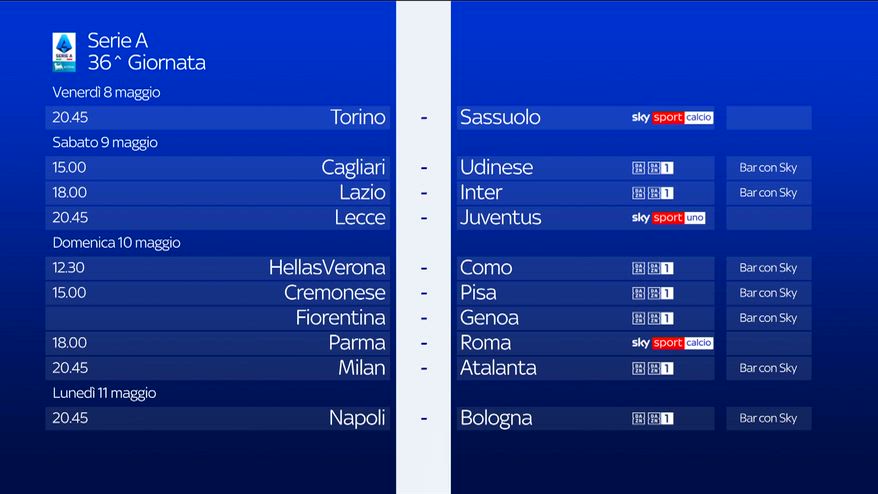 Serie A, anticipi e posticipi fino alla 36^ giornata