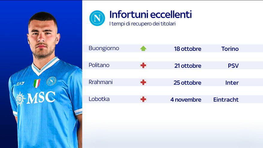 Politano rientra ad allenarsi in gruppo ma ha ancora un fastidio al gluteo. Ci sono però valide alternative davanti, come Neres ed Elmas. Buongiorno recupera dall’infortunio e potrebbe esserci per la prossima partita contro il Torino, sabato 18 ottobre. Guarda il VIDEO.