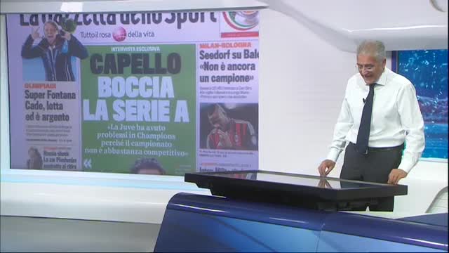 L'argento della Fontana a Sochi, l'anniversario della morte di Pantani e l'anticipo di Serie A Milan-Bologna sulle pagine dei quotidiani sportivi di oggi.