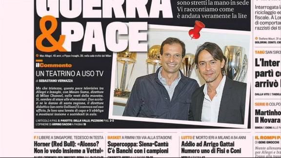 I quotidiani di oggi parlano della pace fatta tra Allegri e Inzaghi, la Serie A che riparte con due anticipi Parma-Fiorentina e Chievo-Juventus.