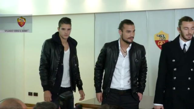 Lamela, Osvaldo, Balzaretti e Stekelenburg modelli per un giorno alla presentazione delle nuove divise ufficiali.