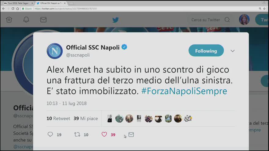 Napoli, infortunio per Meret: frattura all'ulna