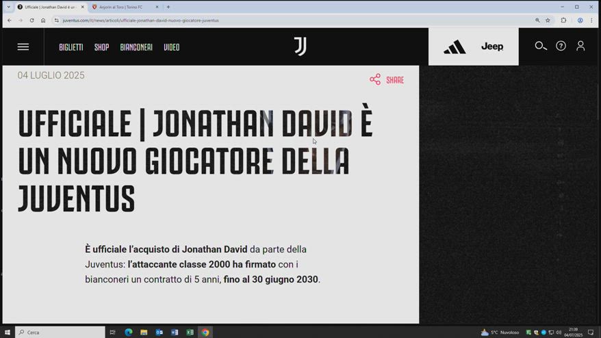 Juve, è ufficiale l'arrivo di Jonathan David