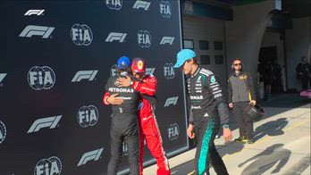 Hamilton abbraccia Kimi Antonelli dopo la pole in Cina