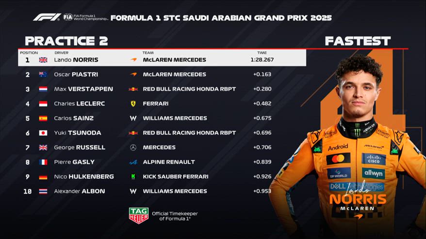 F1, il recap delle Prove Libere 2: Norris il più veloce