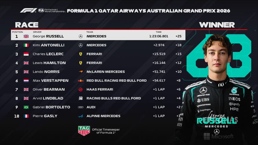 F1, GP Australia: risultati e tempi della gara