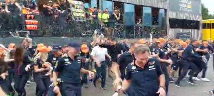 Verstappen, un'altra vittoria: la festa del team in Austria