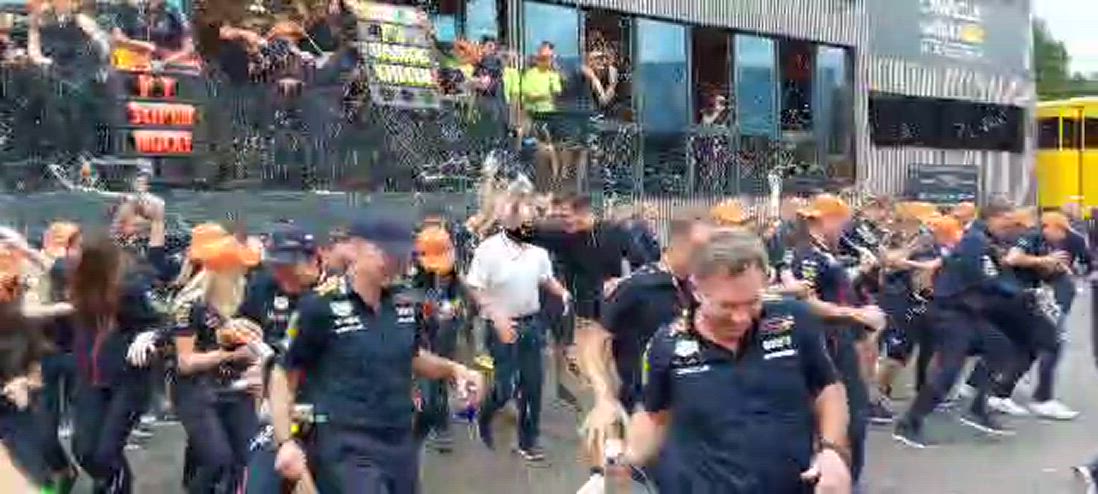 Successo numero 42 in carriera per Verstappen e terzo gradino del podio per Perez. In Austria, nel GP di casa, la Red Bull fa ancora una volta festa. Le immagini di tutto il team che posa con i trofei e poi si scatena.