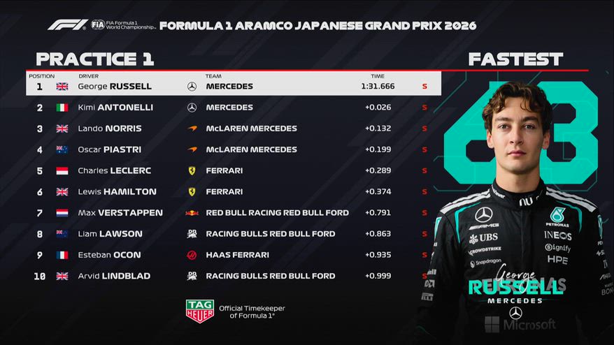 Russell torna in testa: i risultati delle FP1 in Giappone