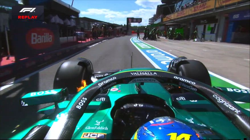 Imola, fuoco sull'anteriore di Fernando Alonso