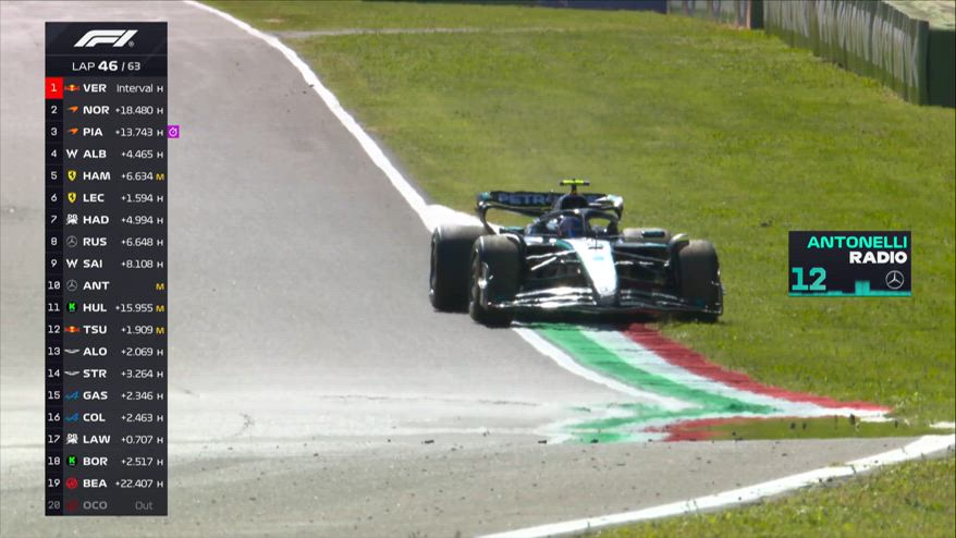Problemi per Antonelli a Imola: si ferma nell'erba