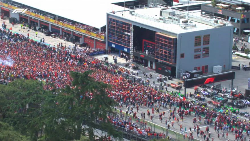 Imola, i tifosi corrono sotto il podio cantando l'inno