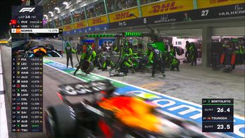 Rischio pazzesco nel corso del GP di Singapore: uno pneumatico rotola pericolosamente dal box della Sauber in pit-lane mentre sta accorrendo la Red Bull di Tsunoda. Un meccanico con un colpo felino riesce a evitare l'incidente e soprattutto a non farsi investire dal giapponese. Guarda il video.