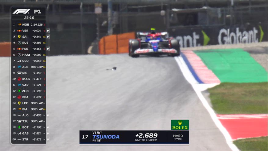 Montmelò, pezzo di ala di Alonso in pista FP1
