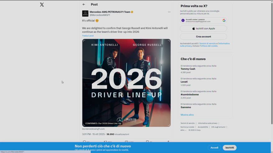 George Russell e Kimi Antonelli sono stati confermati piloti ufficiali della Mercedes anche per il 2026.