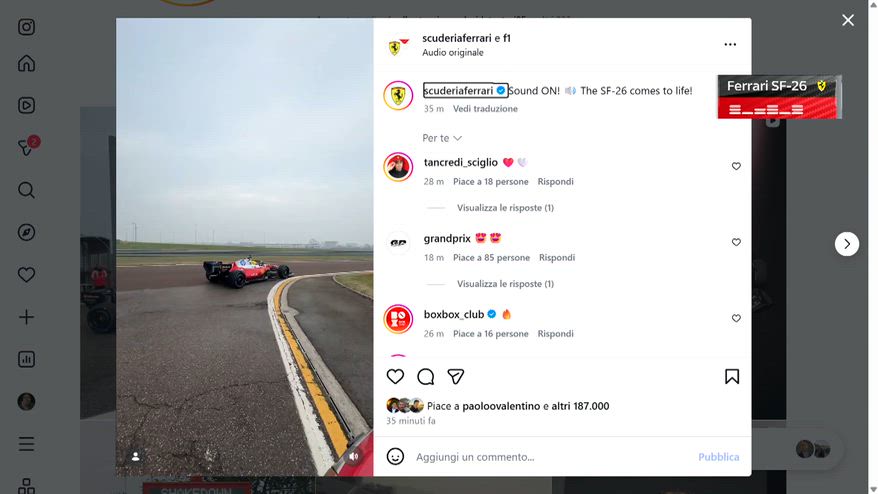 Ferrari, il sound del motore della nuova SF-26
