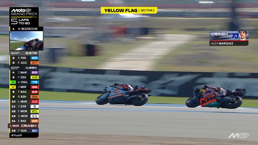 GP Thailandia, Alex Marquez cade a 5 giri dalla fine