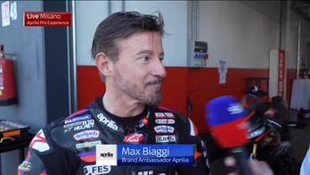 Max Biaggi, brand ambassador Aprilia, in diretta a Sky dall'Aprilia Pro Experience a Misano: "Una giornata fantastica, Bezzecchi e Martin – presenti – danno un valore aggiunto. E' un momento molto positivo, è partita nel migliore dei modi questa stagione 2026 e i margini di miglioramento ci saranno ancora anche per gli altri ma viviamo questo momento con serenità e voglia di fare".
