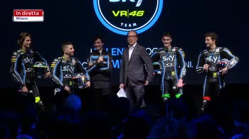 La presentazione dello Sky Racing Team VR46 inizia con un giro di battute sulle necessità fisiologiche prima dello start di un GP del motomondiale.