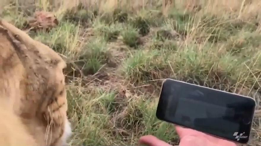 Tifoso senza paura in MotoGP, guarda le Libere con un leone