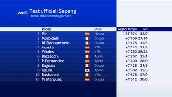 MotoGP, i risultati del secondo giorno di test a Sepang