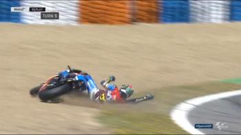 Morbidelli scivola al 17° giro a Jerez, quando si trovava in testa davanti a Marquez.