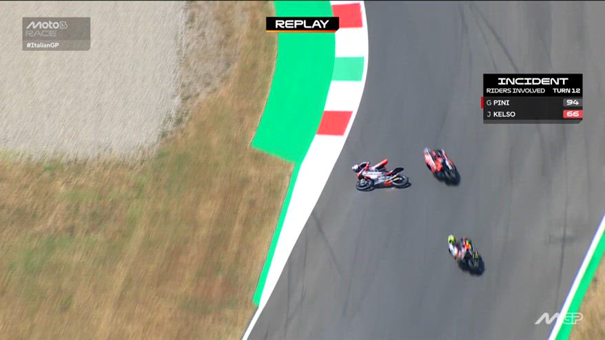 GP Italia, Kelso tocca Pini: scivolata per l'italiano