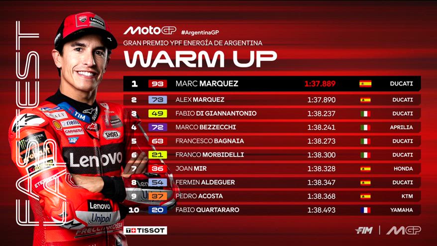 GP Argentina, i risultati del Warm Up: Marquez il più veloce