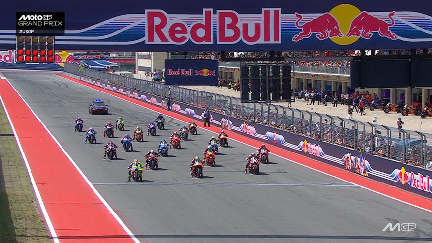 Nel VIDEO, la partenza e il primo giro del Gran Premio di Austin. Subito contatto tra Acosta e Bezzecchi che si prende la testa della gara.