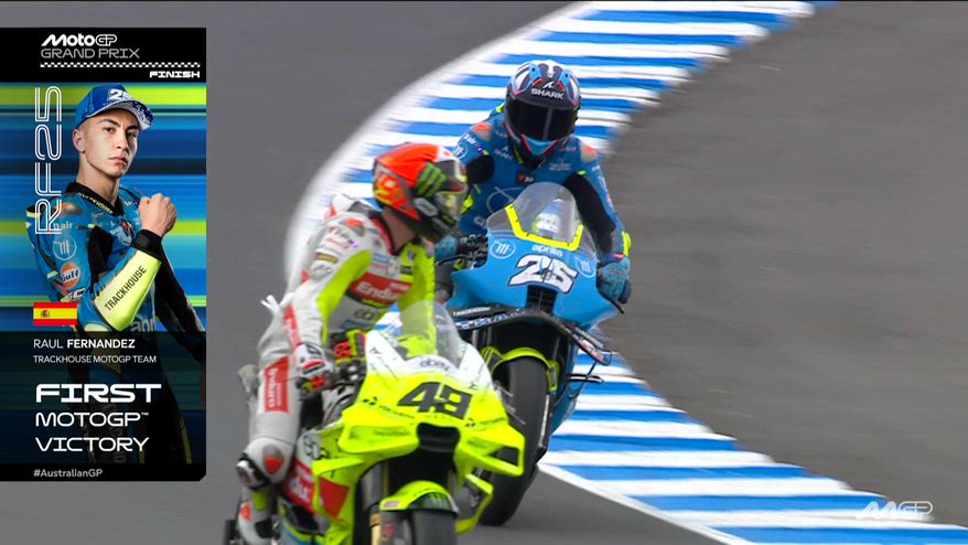 Nel VIDEO l'ultimo giro del GP di Australia a Phillip Island: vince Raul Fernandez davanti a Fabio Di Giannantonio e Marco Bezzecchi, che rimonta dopo i due Long Lap. Caduto Bagnaia. Rivivi le emozioni con Guido Meda e Mauro Sanchini.