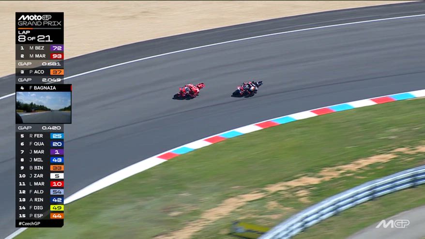 Bagarre e sorpasso di Marc Marquez su Bezzecchi al GP Brno