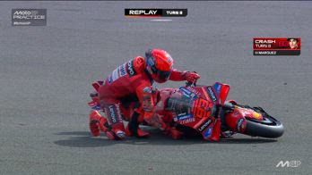 La caduta di Marc Marquez nelle Pre Qualifiche a Silverstone