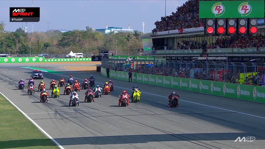 Nel VIDEO, la partenza e il primo giro della Sprint Race del Gran Premio della Thailandia, prova inaugurale del Mondiale MotoGP 2026.