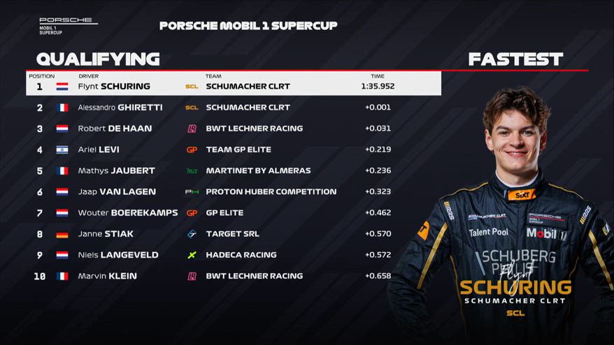 Porsche Supercup: Schuring strappa la pole, Ghiretti 2°