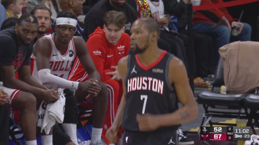 Nella notte Kevin Durant ha realizzato un’altra prestazione di alto livello, mettendo la firma su 40 punti con percentuali stellari (15/23 dal campo di cui 5/10 dalla lunga distanza, seppur con 5/8 ai liberi) allungando a nove la sua striscia di gare consecutive con almeno il 50% al tiro. Né i suoi sforzi (15 punti sono arrivati nel solo quarto periodo) né la tripla doppia di Alperen Sengun però hannoe vitato la sconfitta degli Houston Rockets sul campo dei Chicago Bulls, perdendo ulteriore terreno nella corsa al miglior posizionamento in ottica post-season.