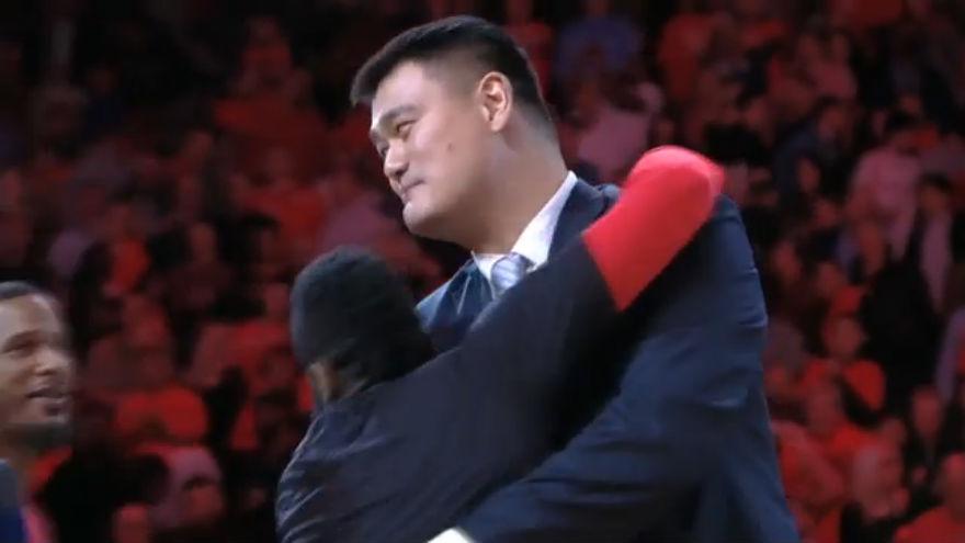 NBA, James Harden salta addosso a Yao Ming