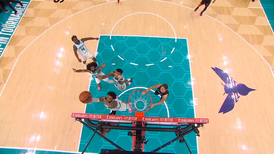 A mettere la firma sulla vittoria degli Charlotte Hornets non è stato solamente il canestro di LaMelo Ball, ma anche una giocata clamorosa di Miles Bridges. Non avendo più timeout a disposizione, dopo il canestro degli Hornets gli Heat hanno rimesso subito il pallone in campo, mettendo nelle mani di Davion Mitchell — miglior realizzatore dei suoi con 28 punti davanti ai 27 di Andrew Wiggins e i 23 di Tyler Herro — il canestro della vittoria. La sua conclusione in corsa è stata però sonoramente stoppata da Bridges, sommerso poi dai compagni al termine di un match da 28 punti, 9 rimbalzi e 3 stoppate per avanzare al turno successivo, dove gli Hornets affronteranno la perdente tra Orlando e Philadelphia per andare a sfidare Detroit ai playoff.