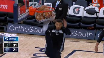 Nel riscaldamento della sfida tra San Antonio e Memphis quattro palloni si sono fermati contemporaneamente nel canestro in cui stavano tirando gli Spurs. Invece di sbloccarli con le mani, come avrebbe fatto senza nemmeno aver bisogno di saltare, Victor Wembanyama si è esibito in uno spettacolare quanto spaventoso calcio volante a tre metri d'altezza, forse imparato nel suo ritiro nel tempio Shaolin della scorsa estate. Un gesto che mostra tutto il suo atletismo, ma chissà quanto è piaciuto allo staff medico dei nero-argento, visto che il francese - al rientro dopo due gare saltate per una contusione ossea - aveva un limite al minutaggio fissato a 20 minuti per preservarne il fisico...