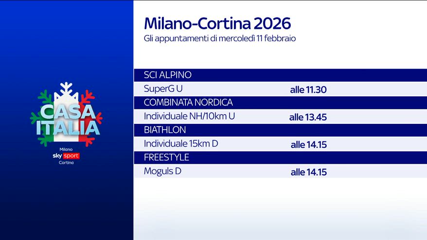 Milano Cortina, il programma delle gare dell'11 febbraio