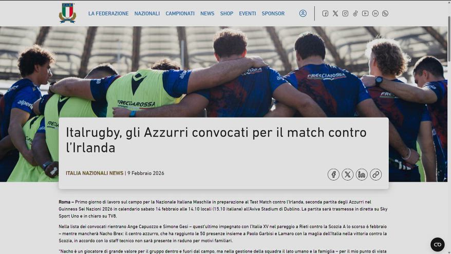 Italrugby, gli Azzurri convocati per il match con l’Irlanda